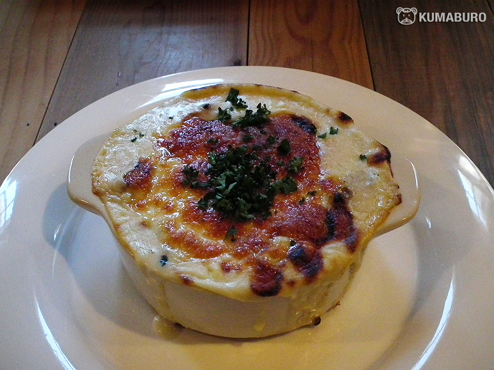 投稿日: 2013年12月25日2013年12月26日 投稿者: くまぱぱBISTRO メリメロ 甲州夢小路にあるレストランです。 オニオングラタンスープ。 シンプルなだけに誤魔化しが効かない料理。とても美味しかった。 山梨ロコモコプレート。 野菜の付け合せが洒落ている。 信玄鶏のドリア。 寒い季節にはとても嬉しい。 山梨ロコモコは1,200円。信玄鶏のドリアは1.350円。 どちらも、前菜、デザート、コーヒー付きのランチセットです。 それにプラス250円で一番上のオニオングラタンスープが付けられます。 初めて入りましたが、おすすめですよ。