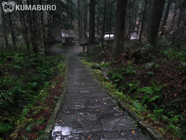この五重塔から、一の坂、二の坂、三の坂と、2400段もの石段を登って御本殿へ向かうのが正規のルートですが、何しろ雨が激しいので、一旦車に戻り、羽黒山自動車道を通って御本殿に行きました。