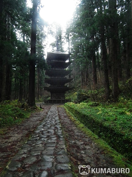 国宝の羽黒山五重塔(高さ29m、三間五層柿葺素木造)です。