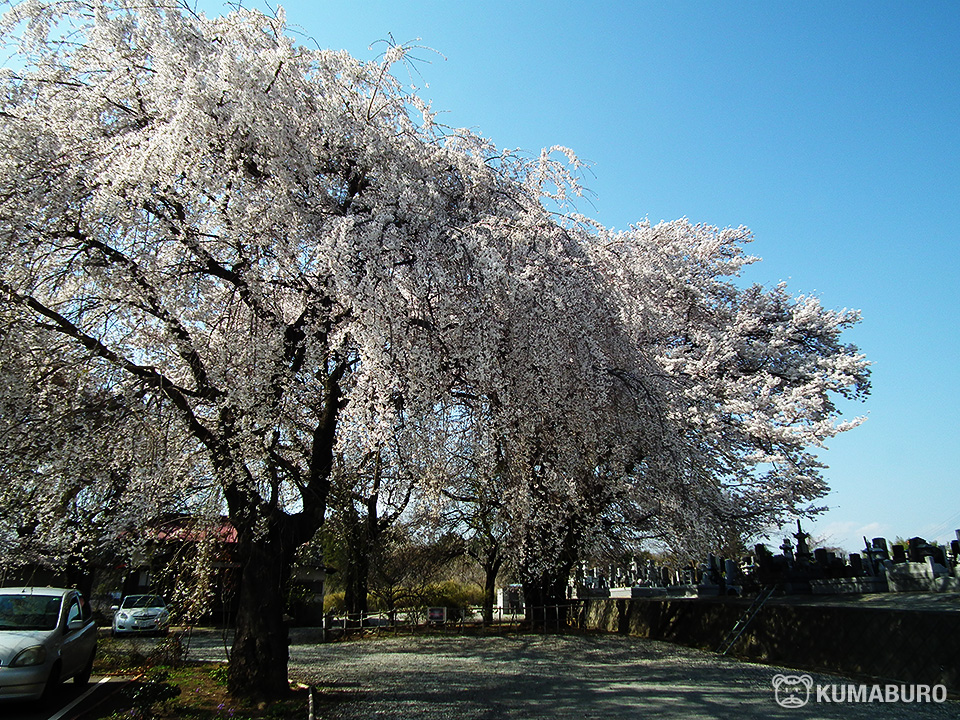 投稿日: 2014年4月11日2014年4月10日 投稿者: くまぱぱ穴山地域の桜2014 韮崎市穴山町にある重久公民館の桜。 本数は少ないが結構な古木だ。 4月9日の撮影だが、ほぼ満開といって良いだろう。 これは穴山の泉竜寺の桜。 奥がソメイヨシノで手前が枝垂れ桜だが、枝垂れ桜の種類はわからない。 大抵の枝垂れ桜はエドヒガンの枝変わりで花色の濃いものが多いが、この枝垂はソメイヨシノと同じ色で並んだ時の見栄えが良い。