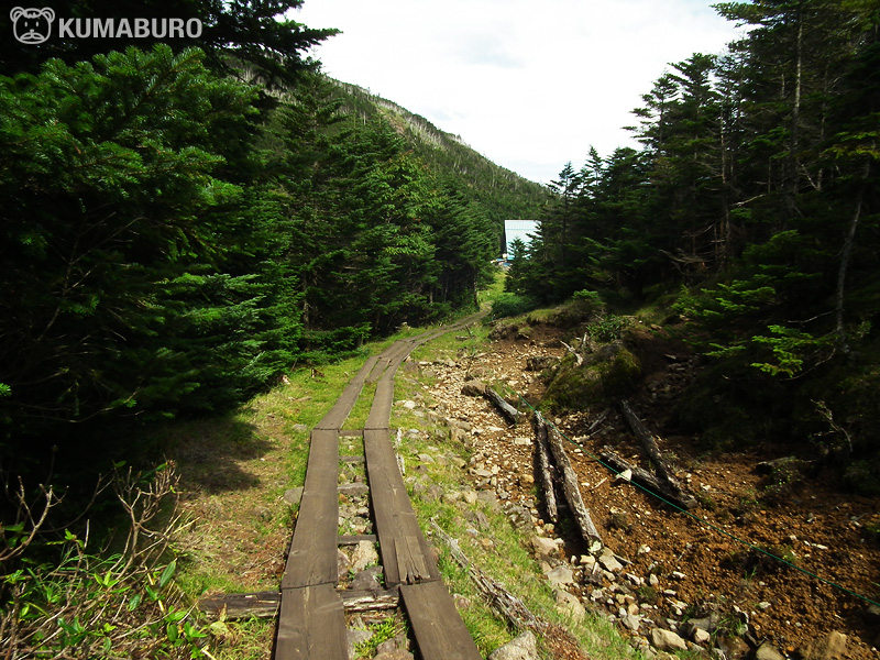 針葉樹と笹の間を、木道が続きます。