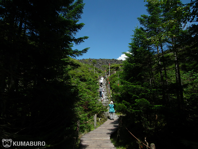 写真は入口付近で、木道から急な上り坂の道に差し掛かります。