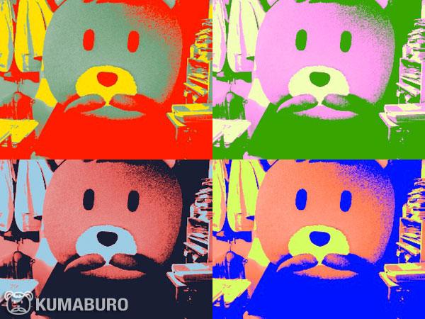 くまぱぱの顔は単純なのでマンガチックですが、人間の顔だと、アンディー・ウォーホール調になりますよ。(笑