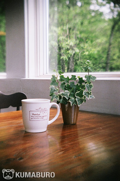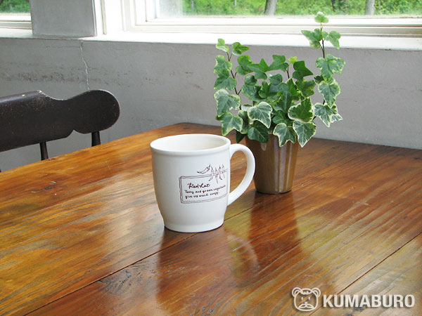 たまたま飲んでいたコーヒーのカップと、普段からテーブルに置いてあるアイビーの鉢です。