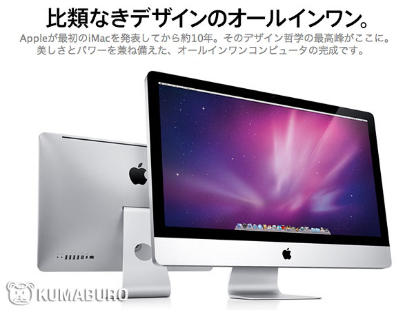 iMac の中では最上位の、27インチ 2.8GHz Quad-Core Intel Core i7 です。