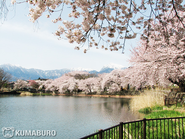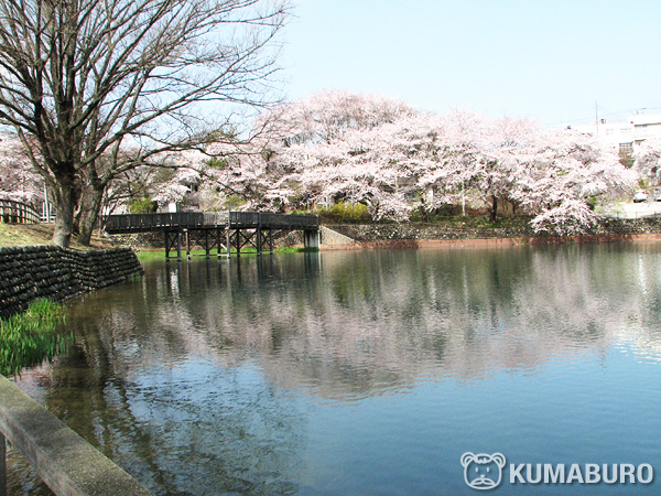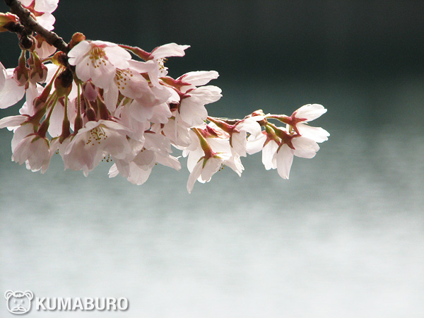 水面に、桜の薄いピンクと空の青が映って、なかなかいい感じでしょう。