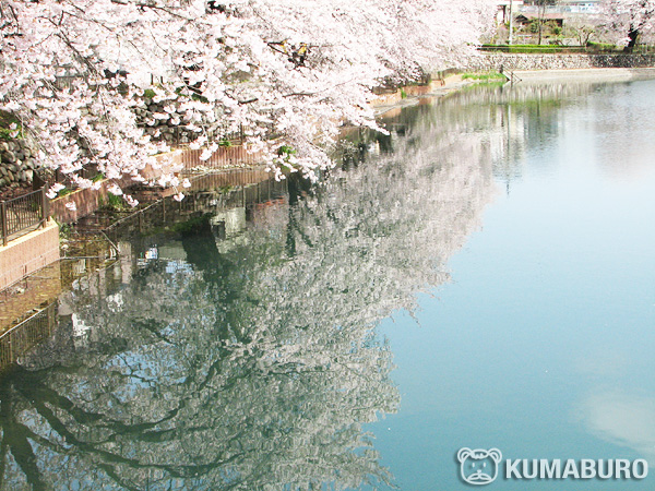 少し俯瞰するようなアングルなので、桜がきれいに水面に映っています。