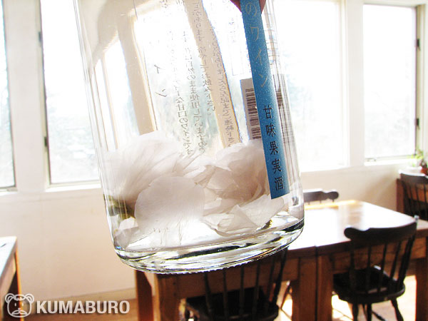 ロゼワインとは言っても、殆ど白に近い薄い色で、桜の花のワインに相応しい淡い桜色です。