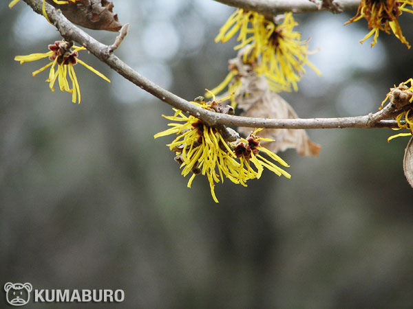 豊年満作のマンサクとも、早春に「先ず咲く」が、東北弁の「まんず咲く」となり、更に変化してマンサクになったとも言われています。
