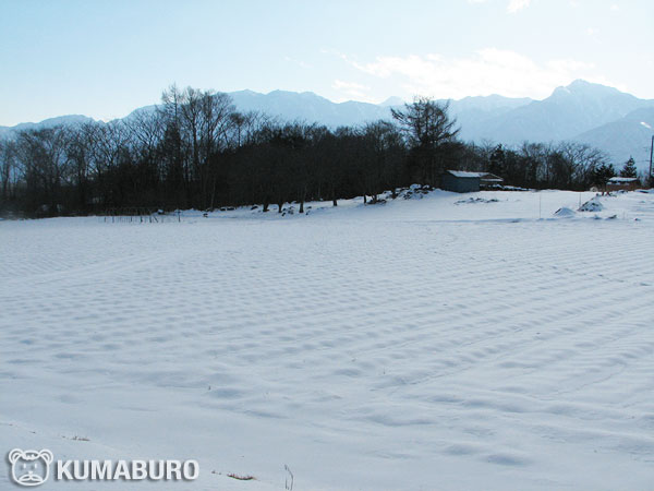 ここだって、普段は何の変哲もない普通の畑なんですが、雪に覆われると、まるで別世界のようです。