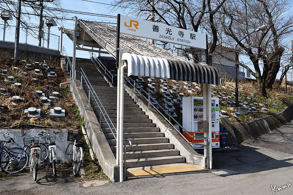 甲府駅から2つめの善光寺(ぜんこうじ)駅です。