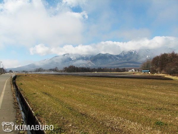 八ヶ岳の山肌は如何にも冬の装いですが、スキー場のゲレンデには、まだ雪は無いようです。