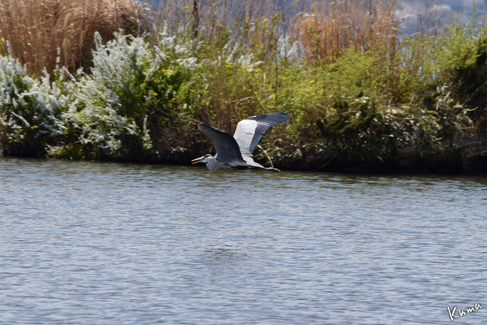 投稿日: 2017年5月7日2017年5月6日 投稿者: くまぱぱ諏訪湖のアオサギ 日本最大のサギ類、アオサギです。 カモ類と比べても大きいのがわかりますが・・ 翼を広げて飛ぶ姿は桁違いに大きいです。 飛んでいる状態から、水に飛び込んで餌を取ることはありません。 泳ぎはあまり得意ではないのでしょう。 大抵は浅瀬を歩きながら餌を探すか、足が立つ程度の場所にある堰堤の上などから魚を見つけて飛び込みます。