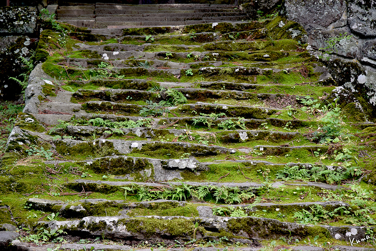 何十年ではなく何百年かの時が経っているのでしょう。石段そのものが自然に還ろうとしているようにも見えます。