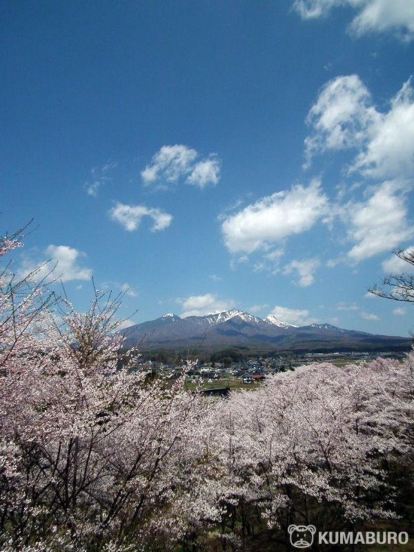 桜の向こうに八ヶ岳が見えます。