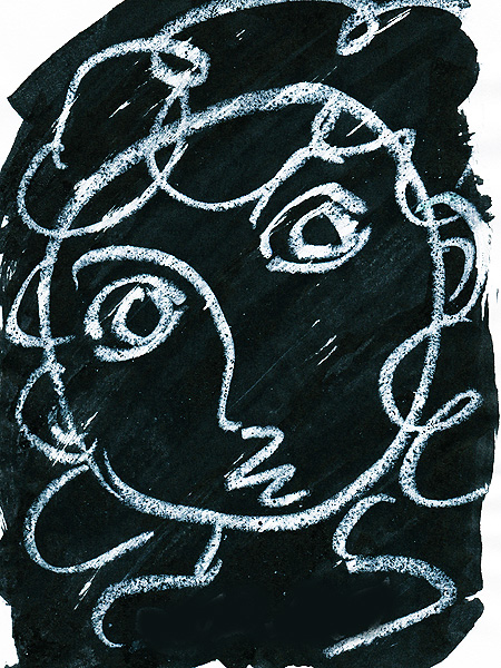 白いクレパスで描いて、筆ペンで塗りつぶしました。