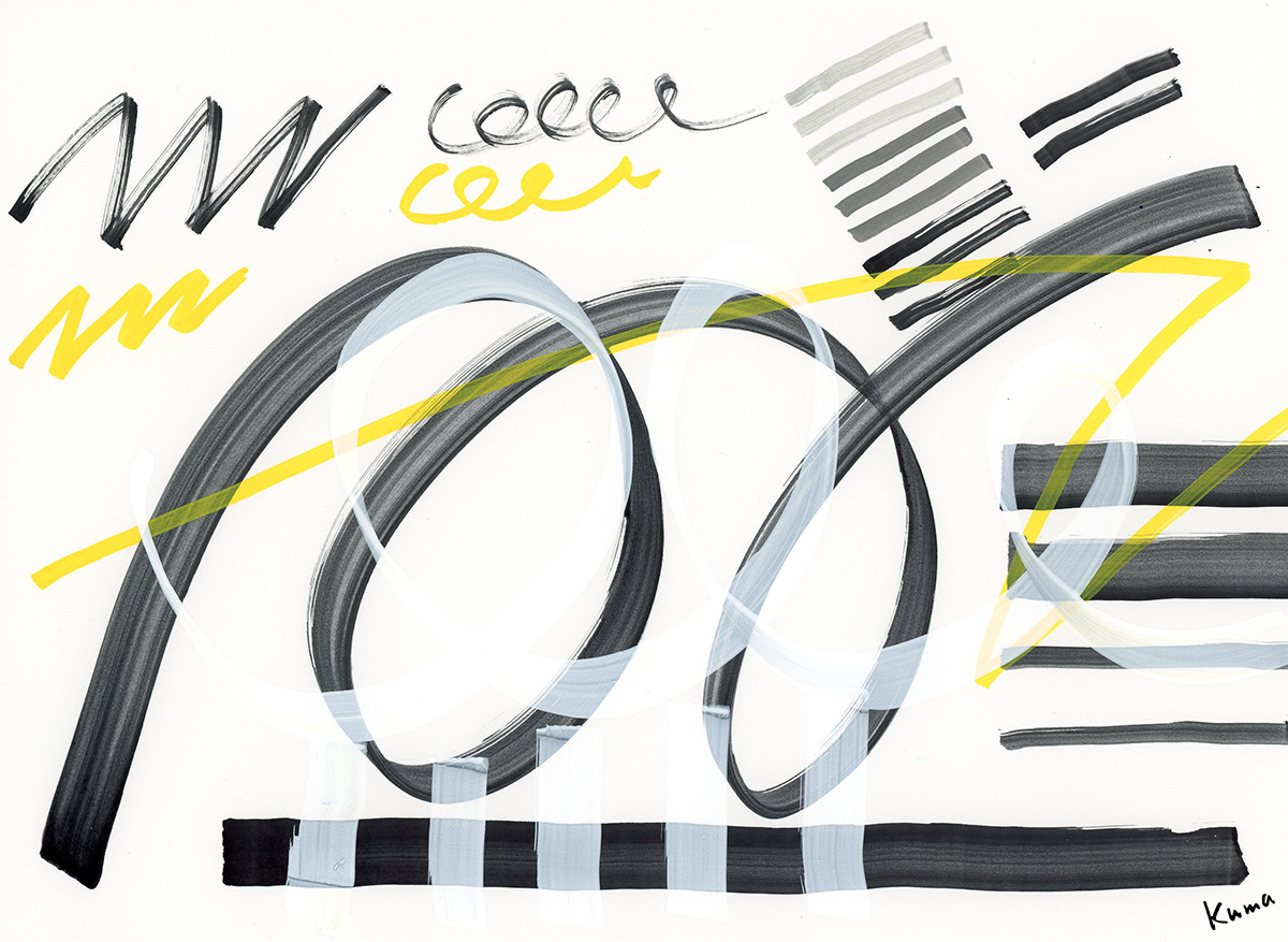 ケント紙(滑らかな紙)に試し描きした。素早く動かすと、かすれると言うか下地が透ける。黒の上に白や黄色などの明るい色もそれなりに乗るので、使い方を考えれば面白い表現ができるかも知れない。