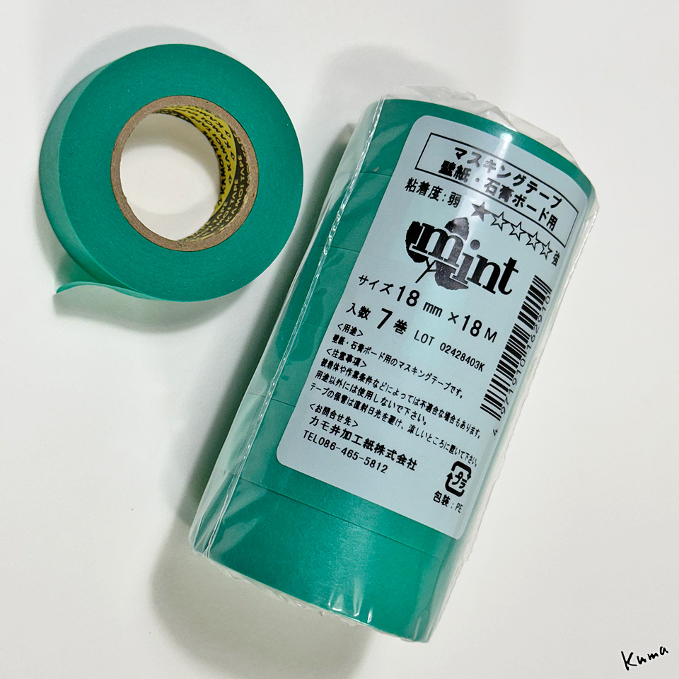 私が今まで使ったことがあるマスキングテープでは、これが一番良い。カモ井の「壁紙・石膏ボード用」というものだ。