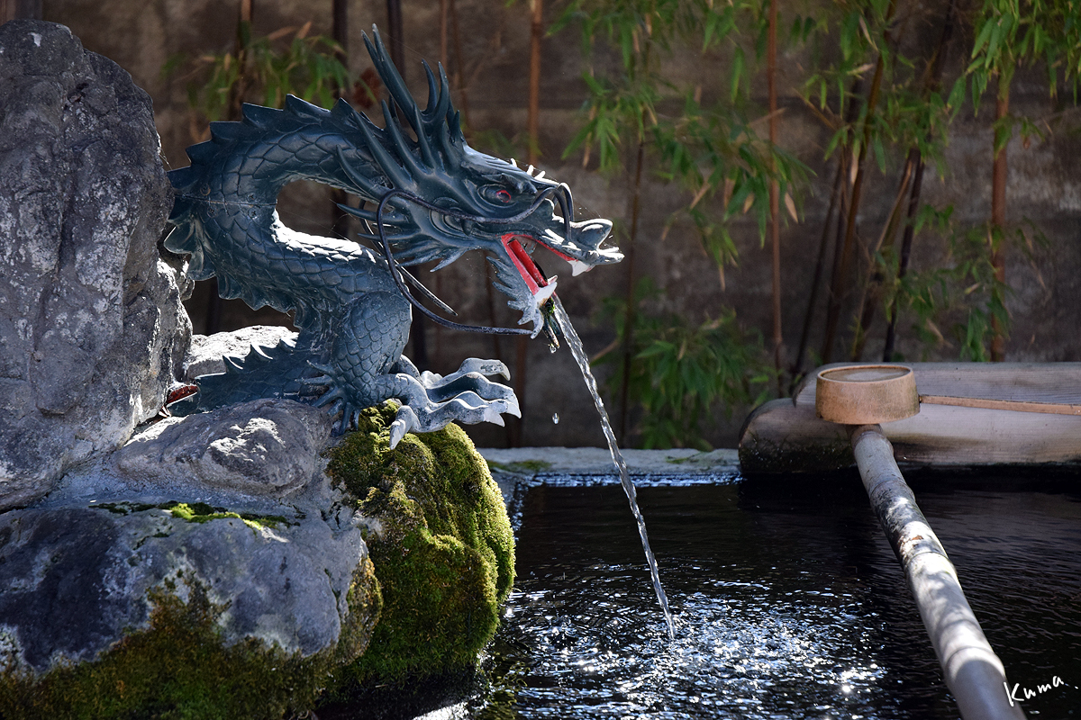 龍が水を吐き出している手水。