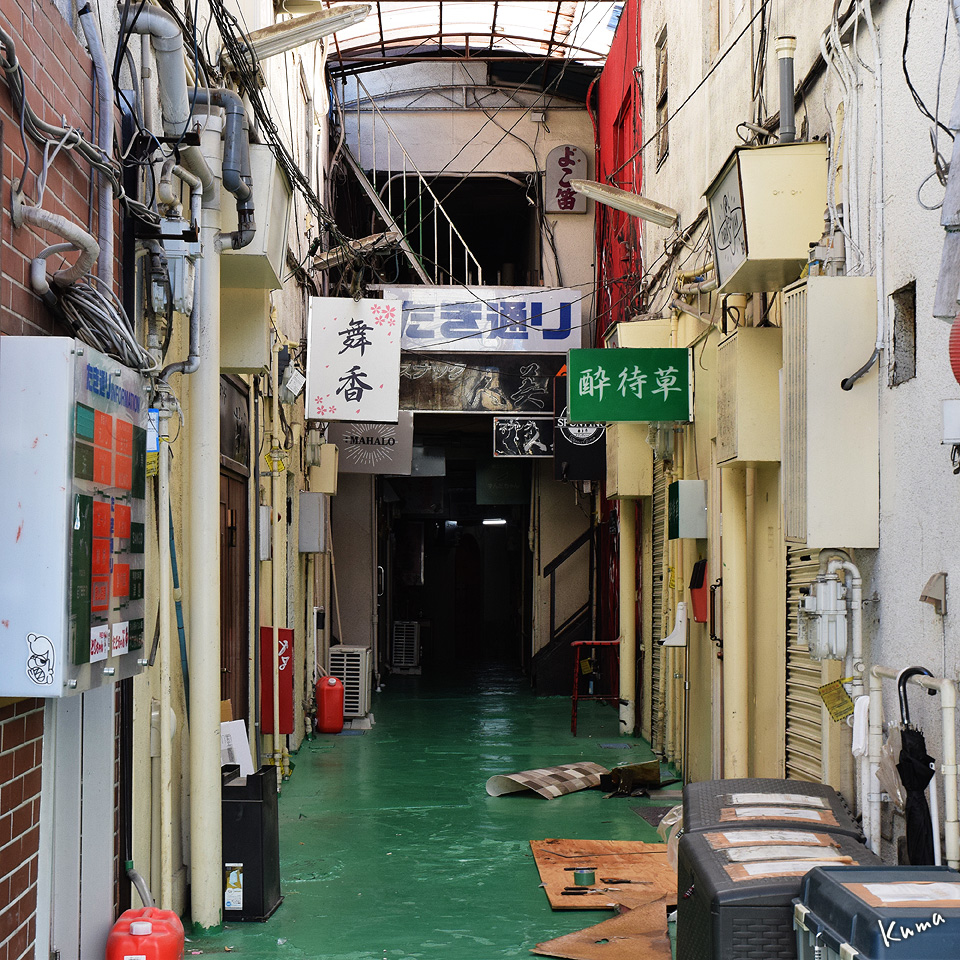 路地の奥のビルの中に続いている。ビルの中に路地が出来たような構造になっているようだ。