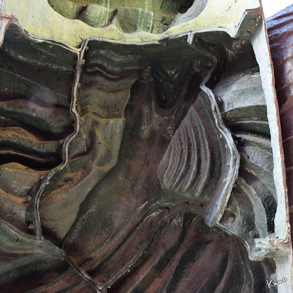 私は個人的に「眉間シワ子ちゃん」と呼んでいる。レリーフ状の半立体で、裏側の構造を見ることが出来る。