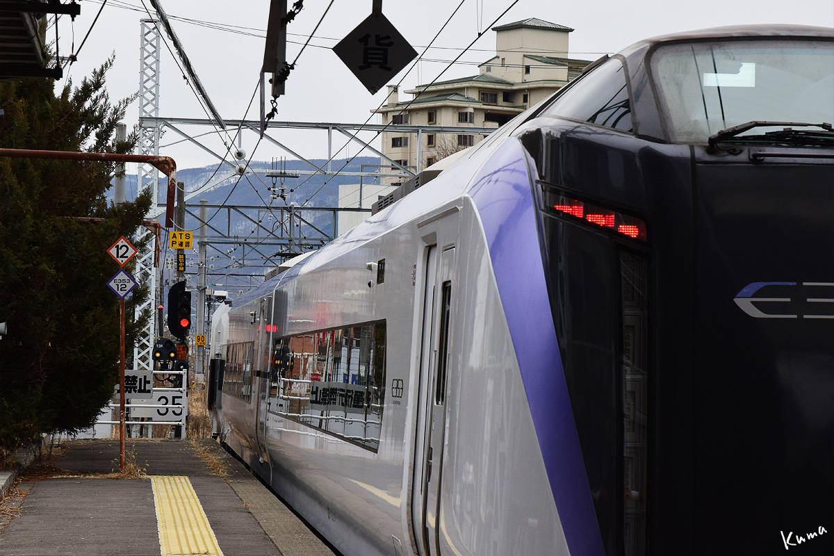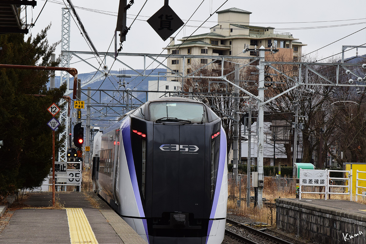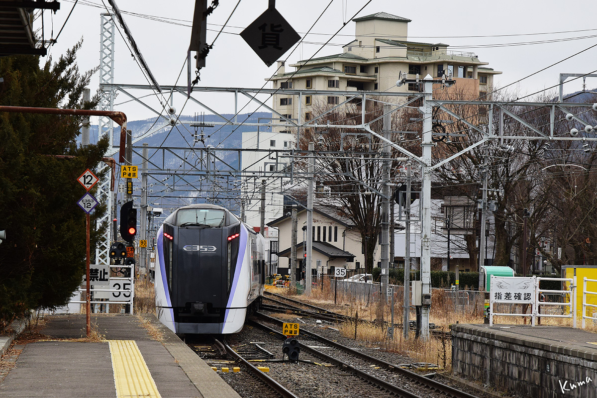 投稿日: 2025年4月4日2025年4月3日 投稿者: くまぱぱあずさ22号発車 上諏訪駅を出ていく上り特急あずさ。 ゆっくりとホームから離れていく。 しかしなかなかスピードを上げない。 列車全体が本線に出るまでは時速35kmに制限されているからだ。 本線に出て駅南側の踏切を通過。ここから速度制限は90kmになる。 E353形式の最高速度には及ばないが、ここは単線で踏切も大変多い区間なので仕方がないのだろう。