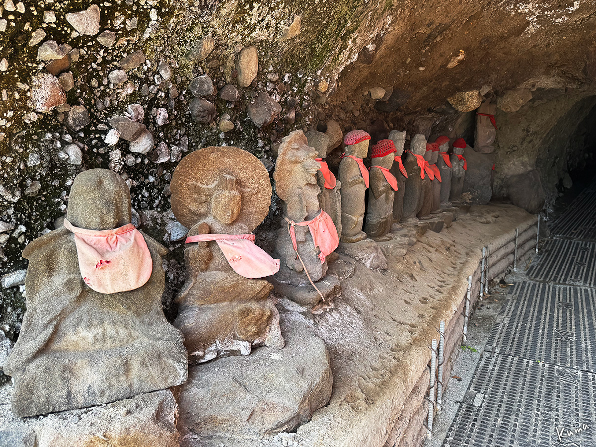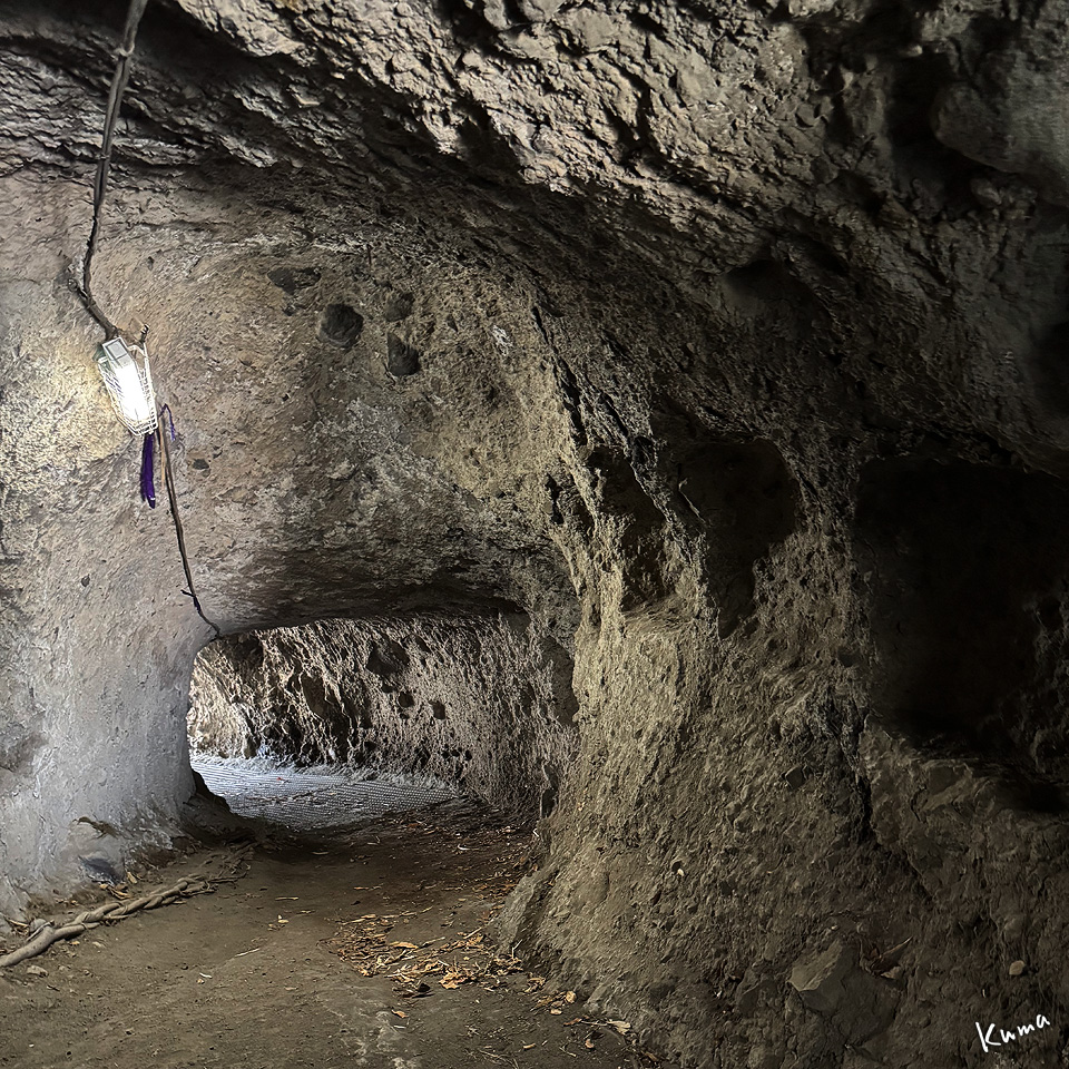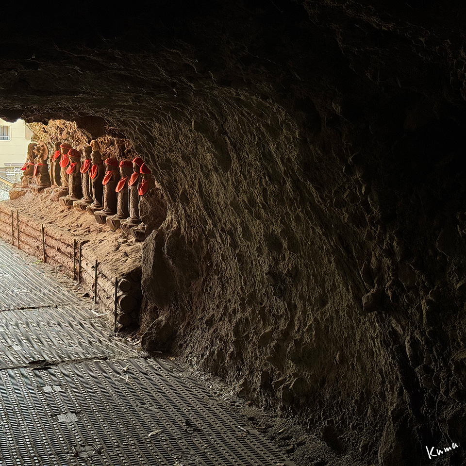 投稿日: 2025年4月25日2025年4月24日 投稿者: くまぱぱ窟観音 1 数年前にもご紹介した韮崎市の窟観音。 これは「あながんのん」と読む。 韮崎平和観音像の下辺りに石組みの入口がある。内部は手彫りの洞窟のようだ。 照明はある。しかもそれほど長くなく、すぐに出口が見える。 出口の直前に地蔵像が並んでいる。夜だったらちょっと不気味かも。 出口から振り返って数えると13体ある。地蔵尊、仁王像、観音像といろいろあるようだ。 次回に続く。