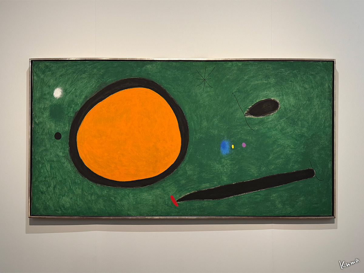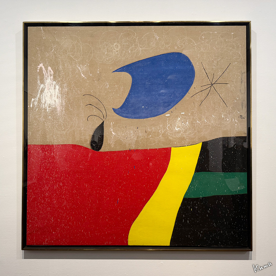 「涙の微笑」1973年/アクリル。1967年に描き始めて6年後に完成。ミロにはよくあることで、その間に手を付けない期間があったり他の作品を書いたりもしているらしい。