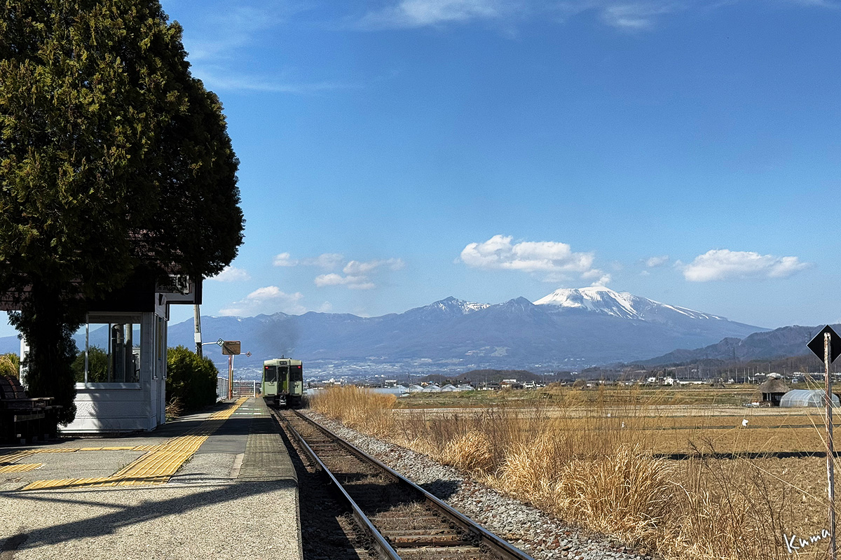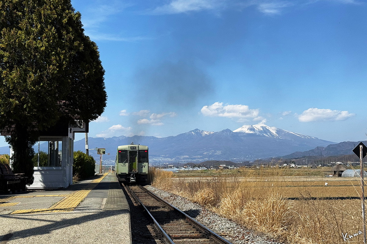 投稿日: 2025年4月30日2025年4月30日 投稿者: くまぱぱ浅間が一番美しく見える駅 佐久の田園地帯にある無人駅。青沼駅。 広々とした田園と、その向こうに広がる街々。 何も遮るもののない風景に聳える雪をいただいた峰。 浅間山の姿が最も美しく見える駅と言って良いだろう。 私は佐久方面に行くと、何の用はなくともここに立ち寄ることが多い。