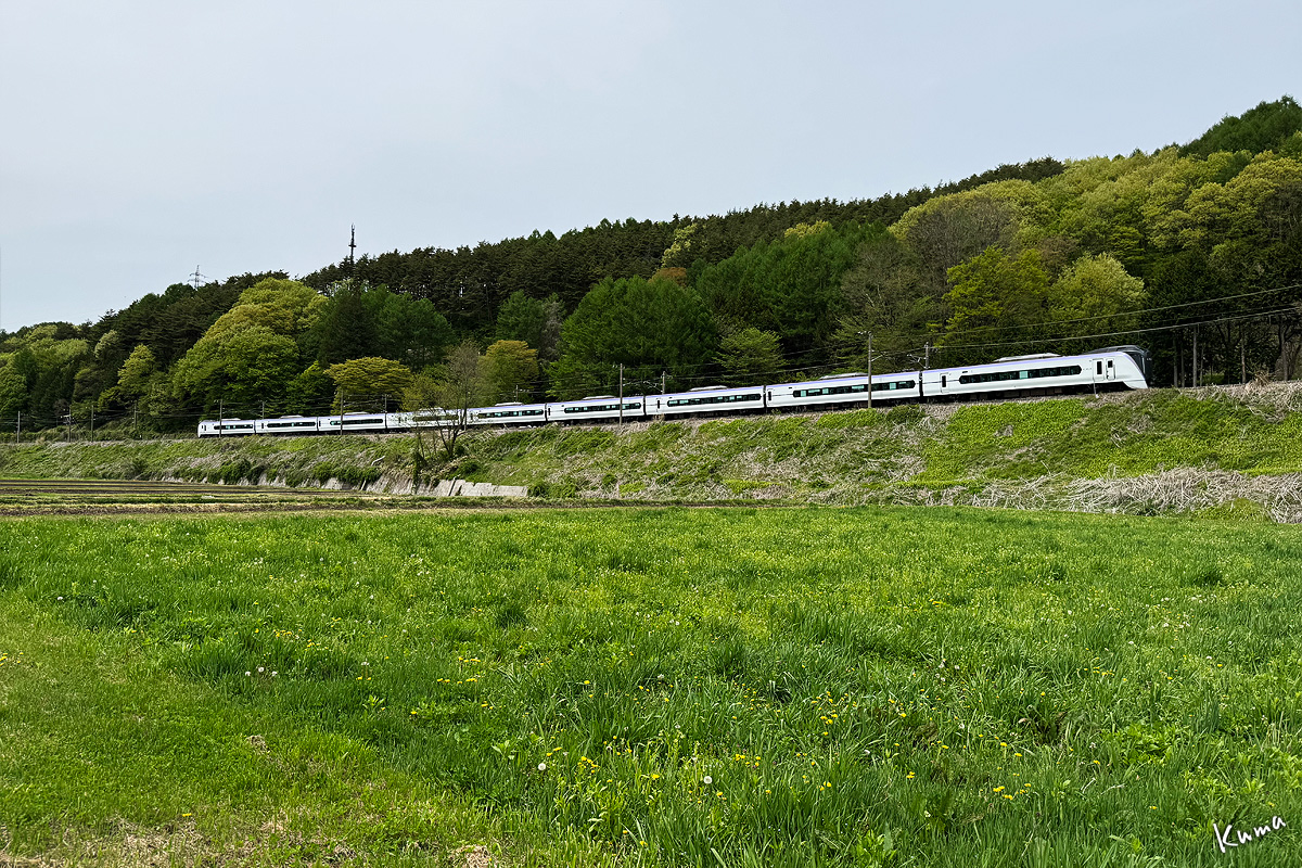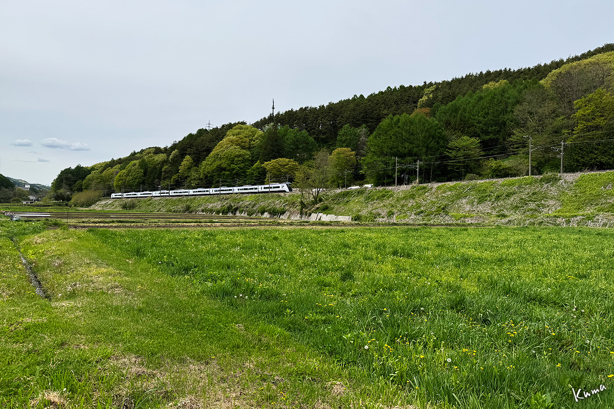 投稿日: 2025年5月28日2025年5月27日 投稿者: くまぱぱ新緑の里山を走る 下り特急あずさが走る。 後ろの山はすずらんの里駅近くの御射山だ。 その昔、諏訪大明神の御狩場だったと言われている。 築堤にはまだ枯れ草も目立つが、周囲は一面の緑色だ。 列車は間もなくカーブの向こうに消えようとしている。 次の停車駅「茅野」には数分で到着する。