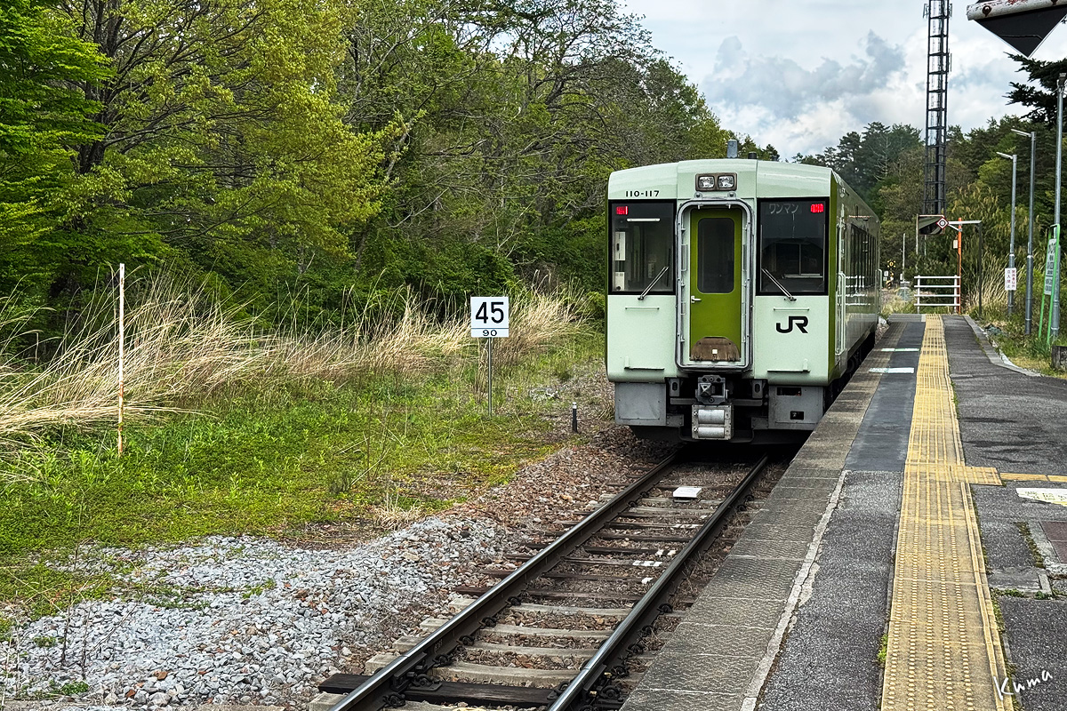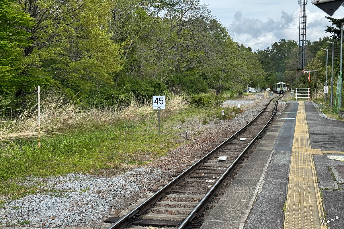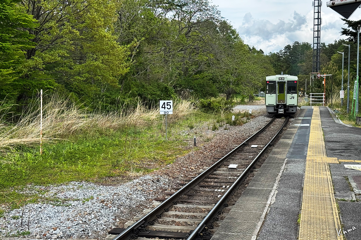 投稿日: 2025年6月23日2025年6月22日 投稿者: くまぱぱ甲斐小泉駅発車 下り普通列車が甲斐小泉駅を出ていく。 小海線全線を続けて走る小諸行きだ。 左側の草地は、元の下り線の撤去跡だ。 その先の砂利の広場は、有人駅時代の保線資材置き場。 その更に向こう側には保線作業員宿舎があった。 1987年の国鉄分割民営化以前のことだ。