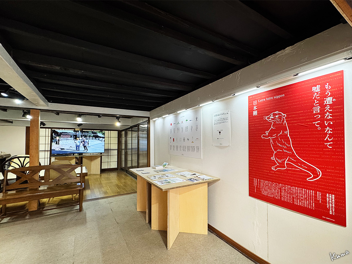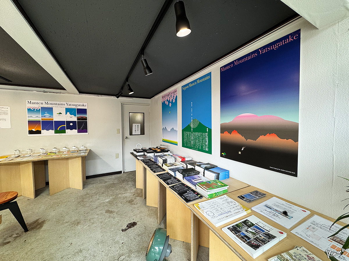 店内は貸しギャラリーになっている。この日は友人の内堀さんデザインの「山の日ポスター」などが展示されていた。