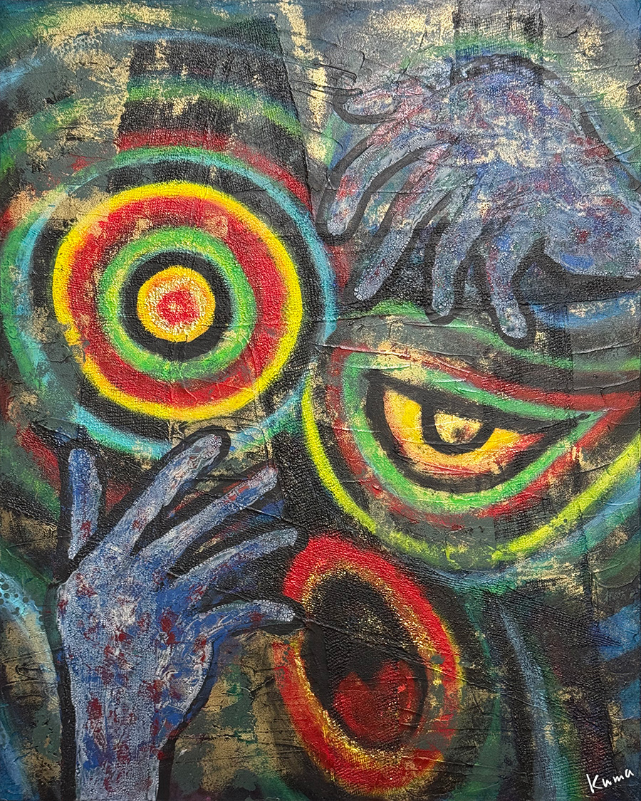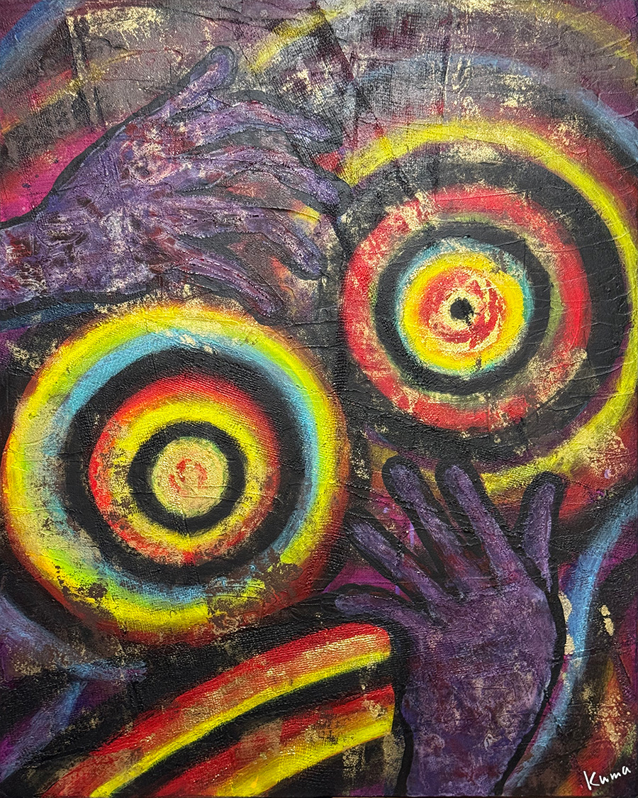 青系の絵も同じように手の部分に色を重ねる。