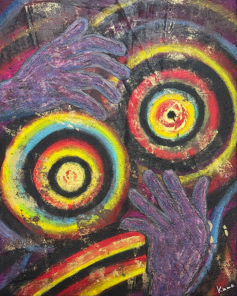 今度はオイルパステルを使ってタッチをつけていく。