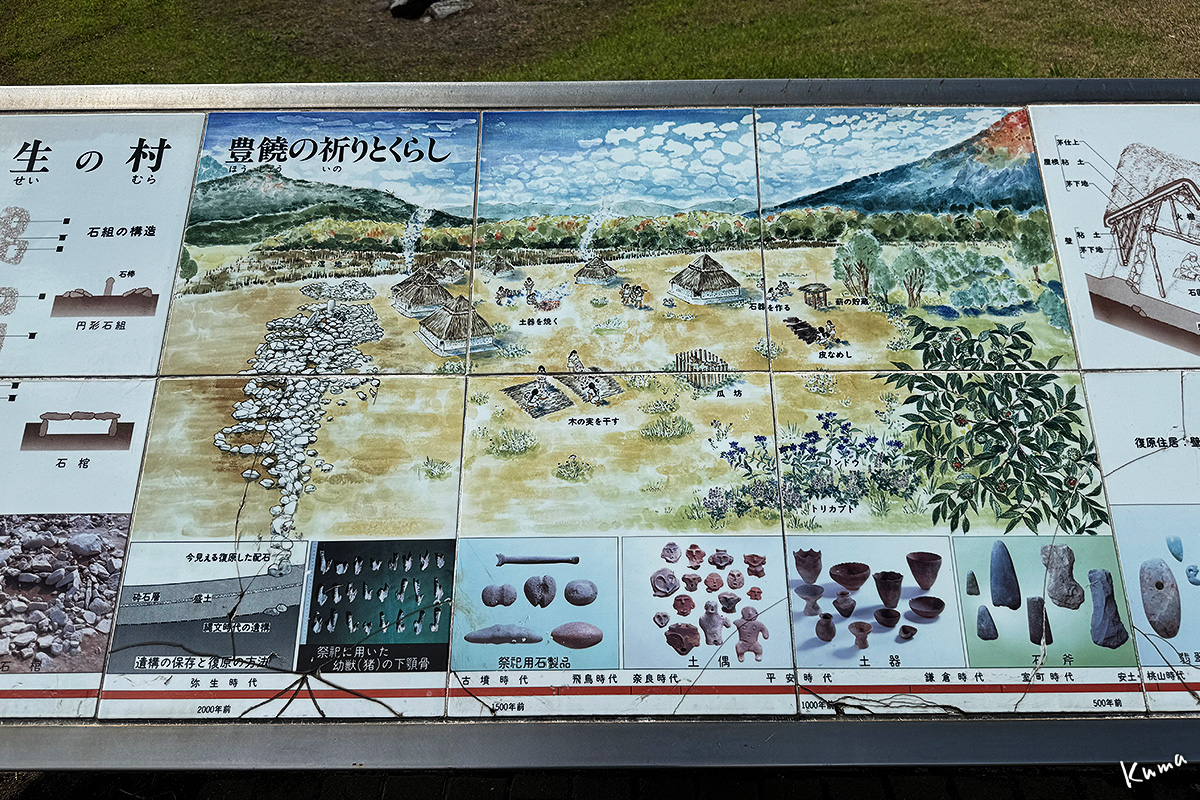 栗の実がたくさん落ちている。太古の時代、栗は重要な食物だったので、この集落の豊かさを表していると思われる。
