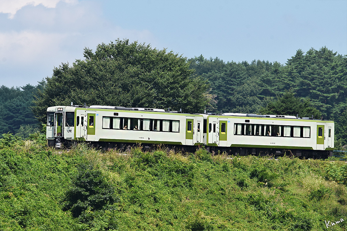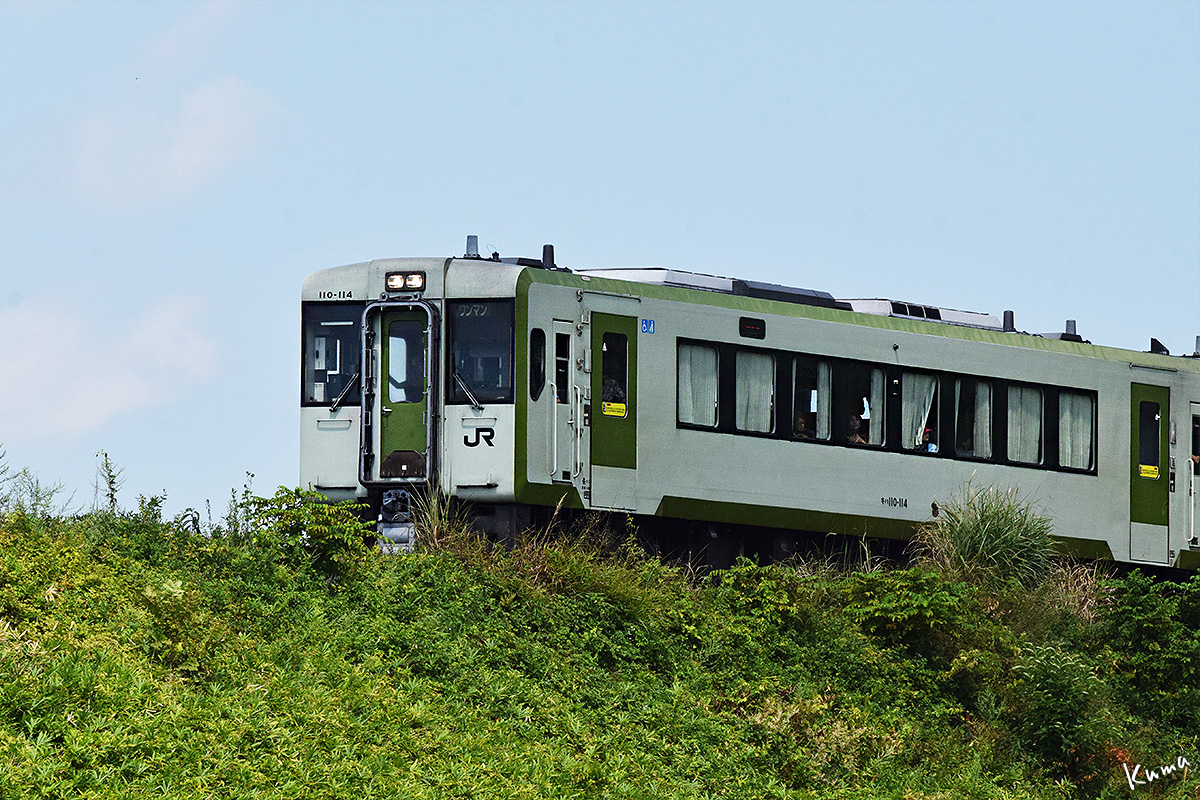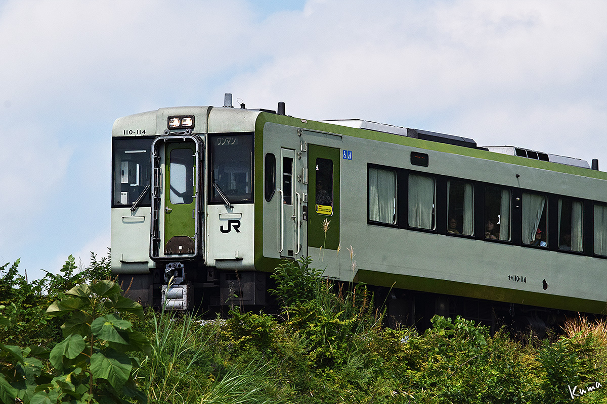 投稿日: 2025年9月19日2025年9月18日 投稿者: くまぱぱ大曲りを下る 小海線の列車番号226D。 キハ110型の2両編成。 平日の普通列車だが、それなりに乗客の姿も見える。 下り勾配なのでエンジン音も聞こえず、排気も見えない。 轍の音を響かせ、軽快に下っていく。 終点の小淵沢はすぐそこだ。