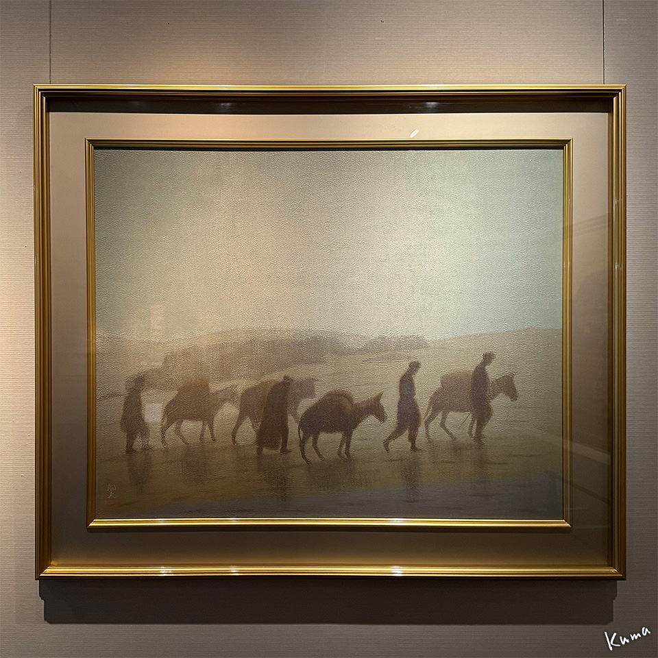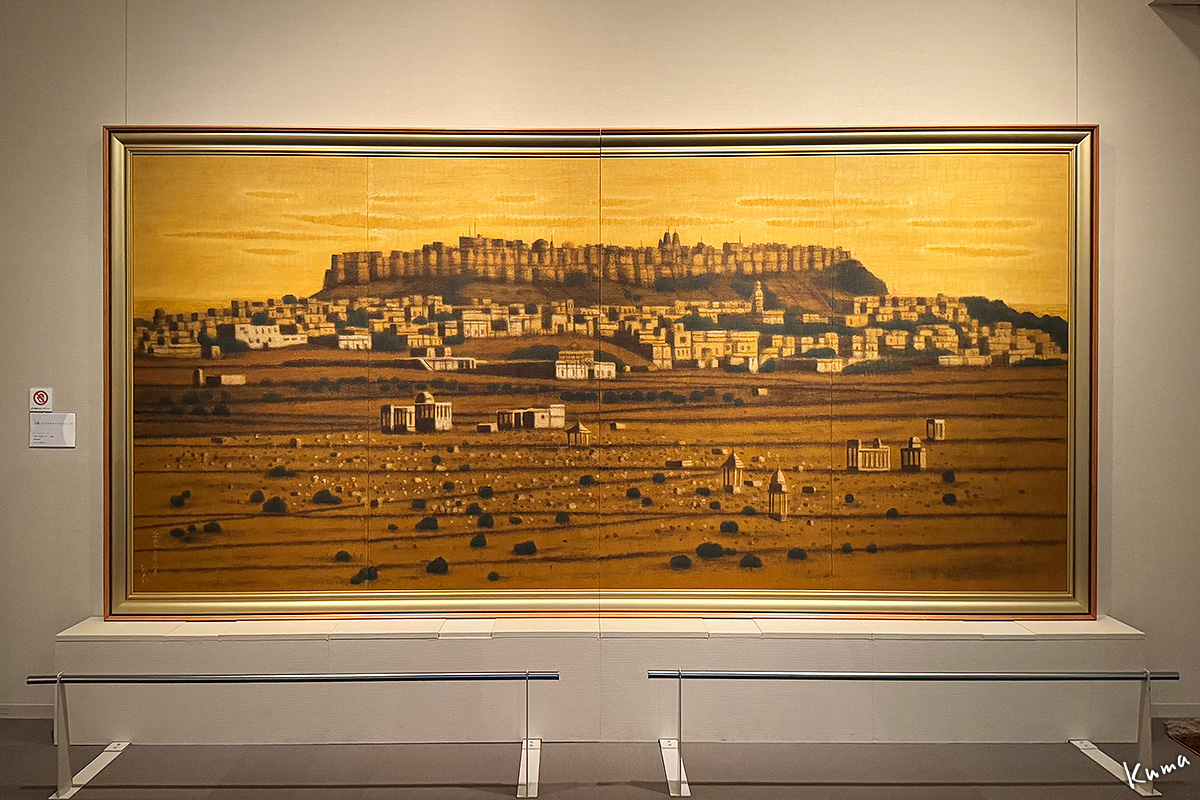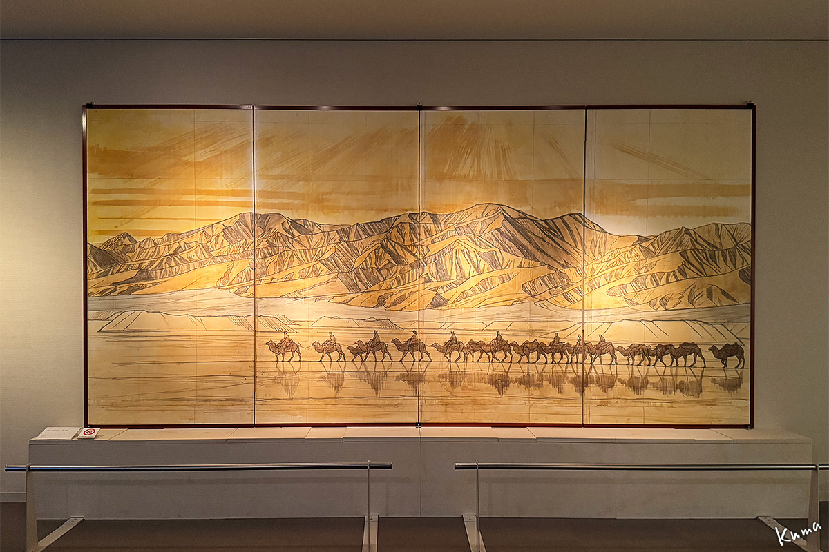 この部屋には巨大な2点の作品が展示されている。正面は遺跡。左側はシルクロードを行く隊商の姿。どちらも大下絵。