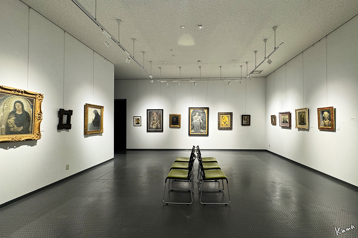 楽器を奏でる人や聖母子、尼僧などを描いた作品が多い。宗教画ではないのだろうが、祈りを感じるようだ。