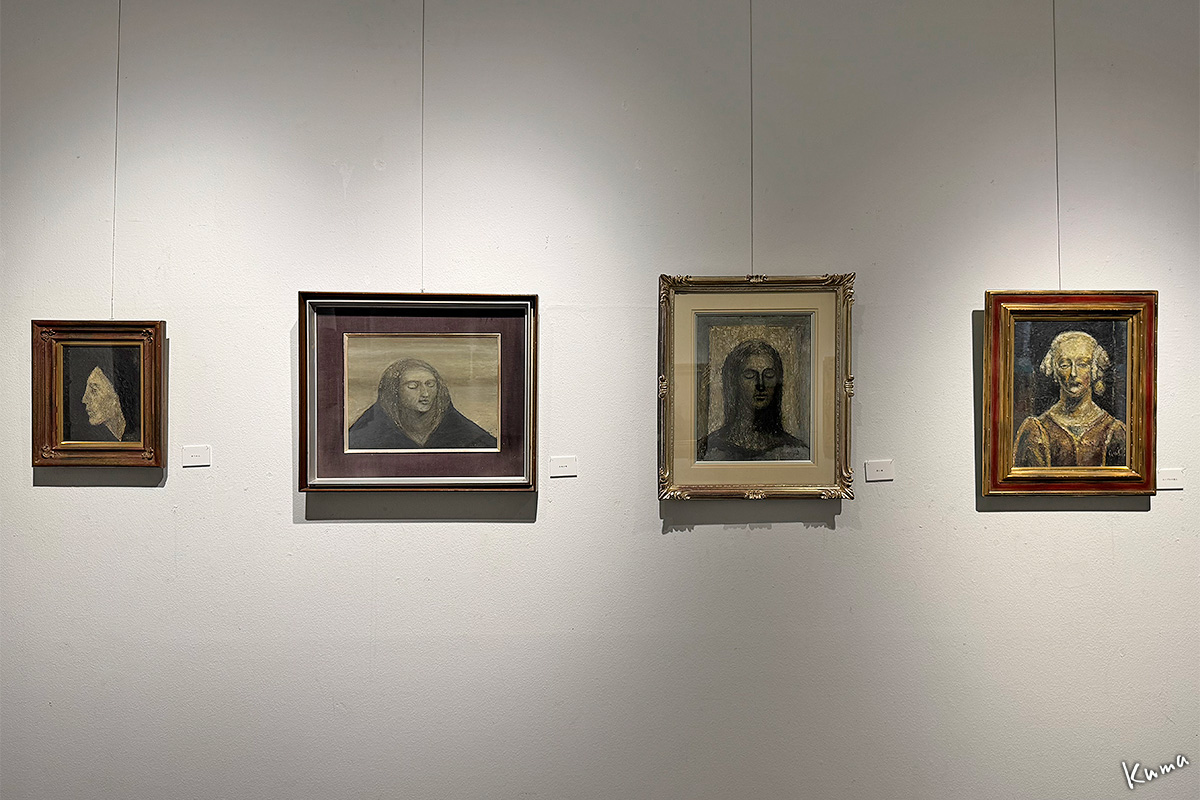 やや暗くて静かな雰囲気を持つ人物画が4点並ぶ。特定の人物の肖像画として描かれたものは右端の1点だけのようだ。