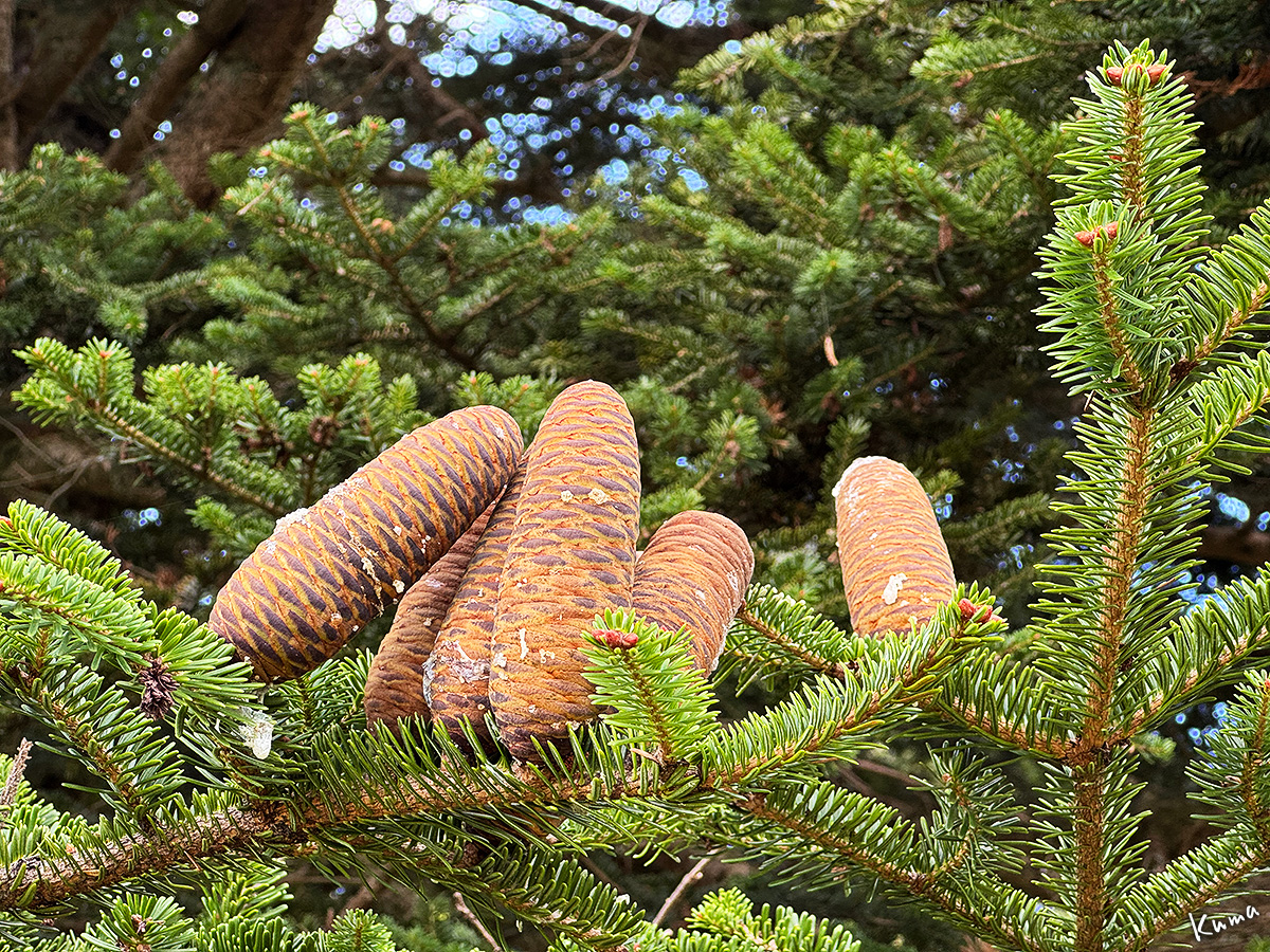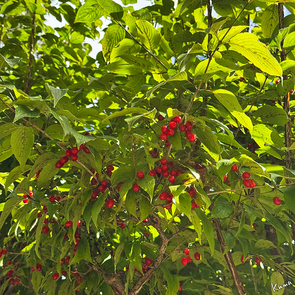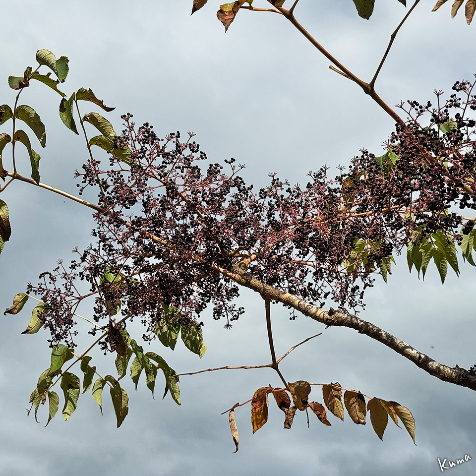 投稿日: 2025年10月19日2025年10月19日 投稿者: くまぱぱ秋の薬用植物園 1 シミック八ヶ岳薬用植物園にも秋が来ている。 オオシラビソの球果。夏には少し黒みがかった青色だが、秋にはこんな色になる。 早春に黄色い花を咲かせるサンシュユの実。完熟すれば食べらるが、渋みと酸味が強い。 ガマズミの実。生食できる。果汁の赤色が美しいので果実酒やジャム、漬物の色付けにも使われる。 タラノキの実。トゲの多い木の新芽を摘んで食すタラの芽は有名。当然、秋には実もなる。 食用可能だが、酸味はなく甘みも弱く、後味に苦みがあるそう。 次回に続く。