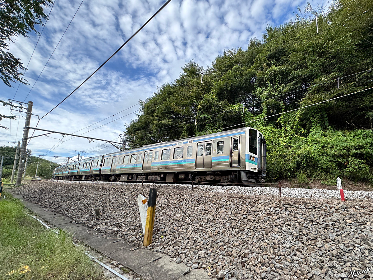 投稿日: 2025年10月28日2025年10月27日 投稿者: くまぱぱ普通列車440M 普通列車が走ってきた。 車両は211系。 松本14:15発の塩山行きだ。 終点の塩山には16:40着となる。 区間列車としてはかなり長距離で、途中駅は22駅もある。