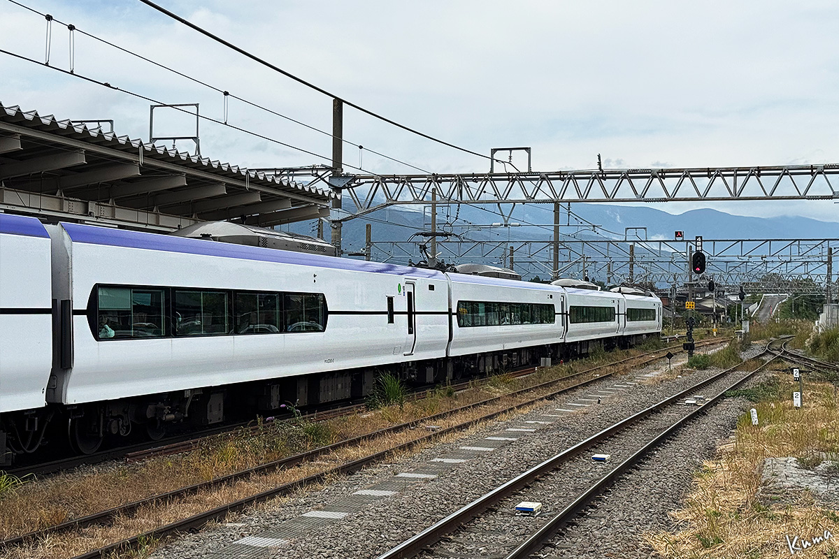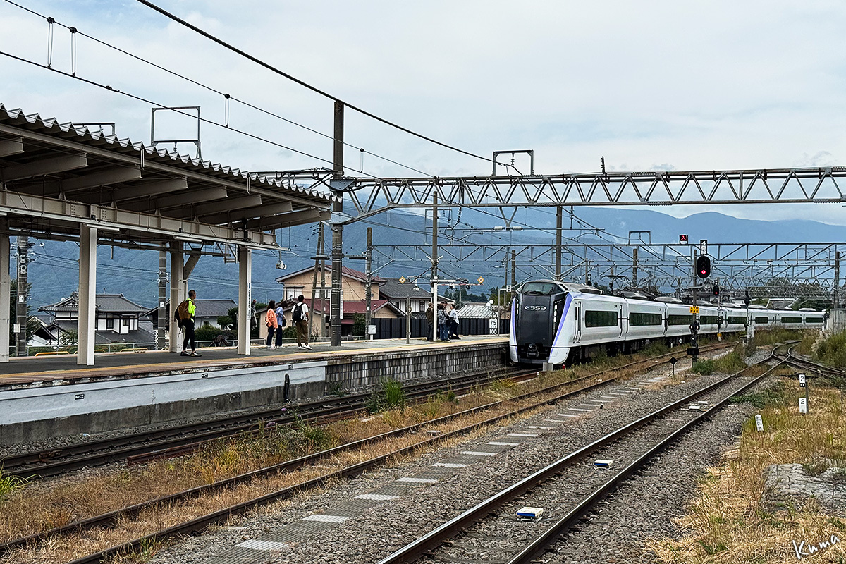 投稿日: 2025年11月4日2025年11月3日 投稿者: くまぱぱあずさ16号 小淵沢駅に特急列車が入ってくる。 ホームで待つ乗客はあまり多くない。 この時期の平日はこんなものかな。 この列車は9:55発、あずさ16号だ。 あずさ号は甲府を出ると八王子まで止まらないのが多い。 しかしこれは何と、石和温泉、山梨市、塩山、大月と、かいじ号並に停車駅が多い。 だからかどうか・・列車番号も 5016M とかいじ号並だ。
