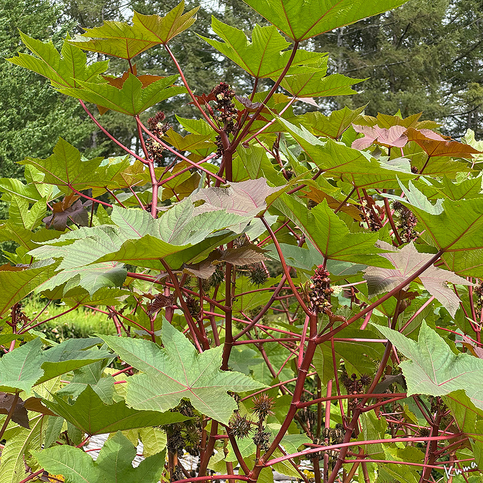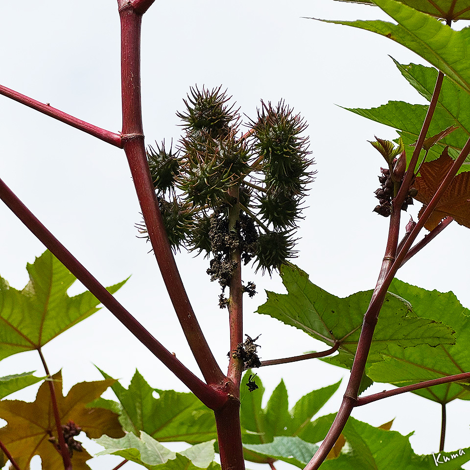 投稿日: 2025年11月9日2025年11月8日 投稿者: くまぱぱ秋の薬用植物園 4 「秋の薬用植物園 3」の続き。 トチノキ。葉が黄色くなってきている。(10月中旬) ミズキの林。 トチノキより黄葉が遅いようだ。 アオギリの実が成っている。 大きな葉はまだ青い。 トウゴマ。 種から採る油はひまし油として利用される。 このトゲトゲした実の中に種がある。 種は猛毒のリシン(致死量は体重1kgあたり0.03mg)を含み、解毒剤は存在しない。決して口にしてはいけない。 次回に続く。