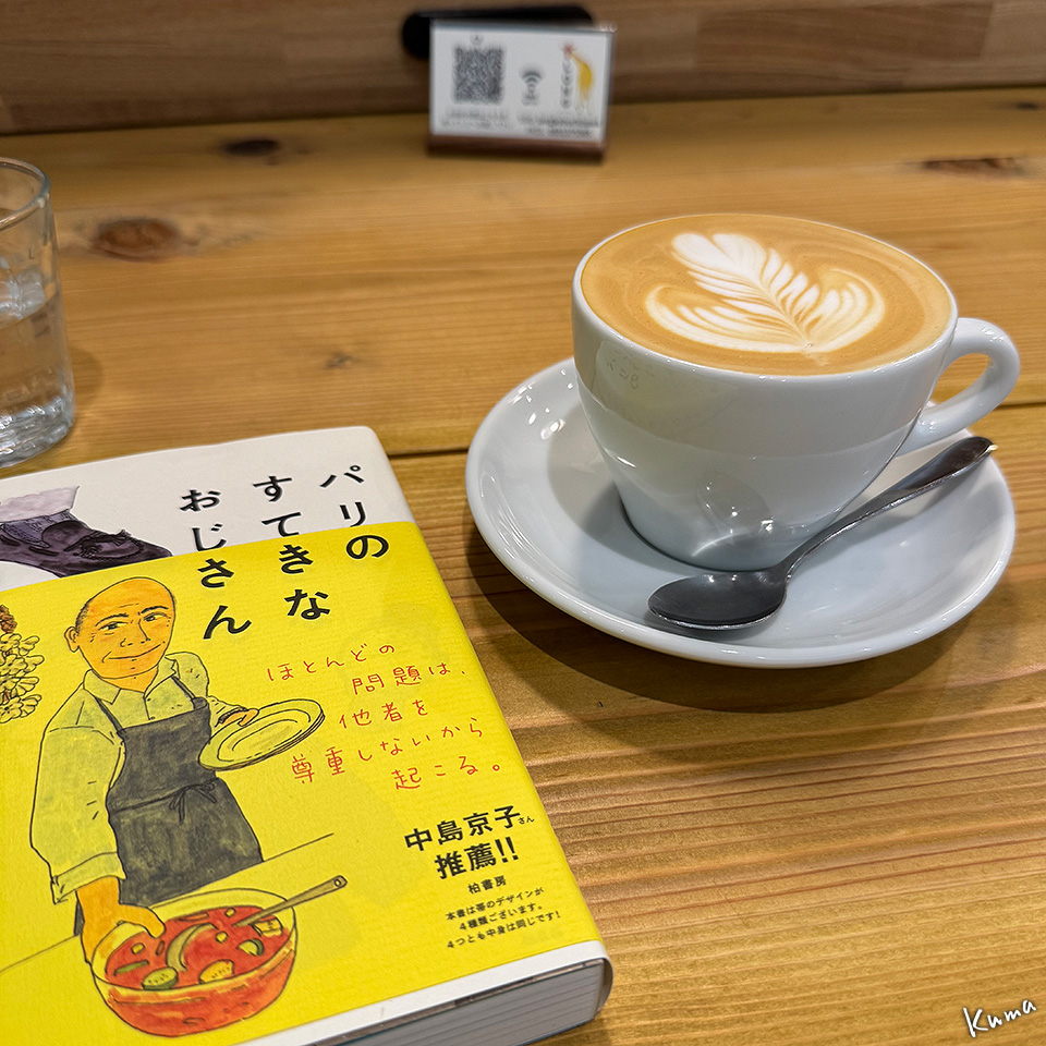 オーダーはQRコードからスマホでできる。バリスタが淹れたカフェラテを楽しみながら、本をめくってみるのもいいね。