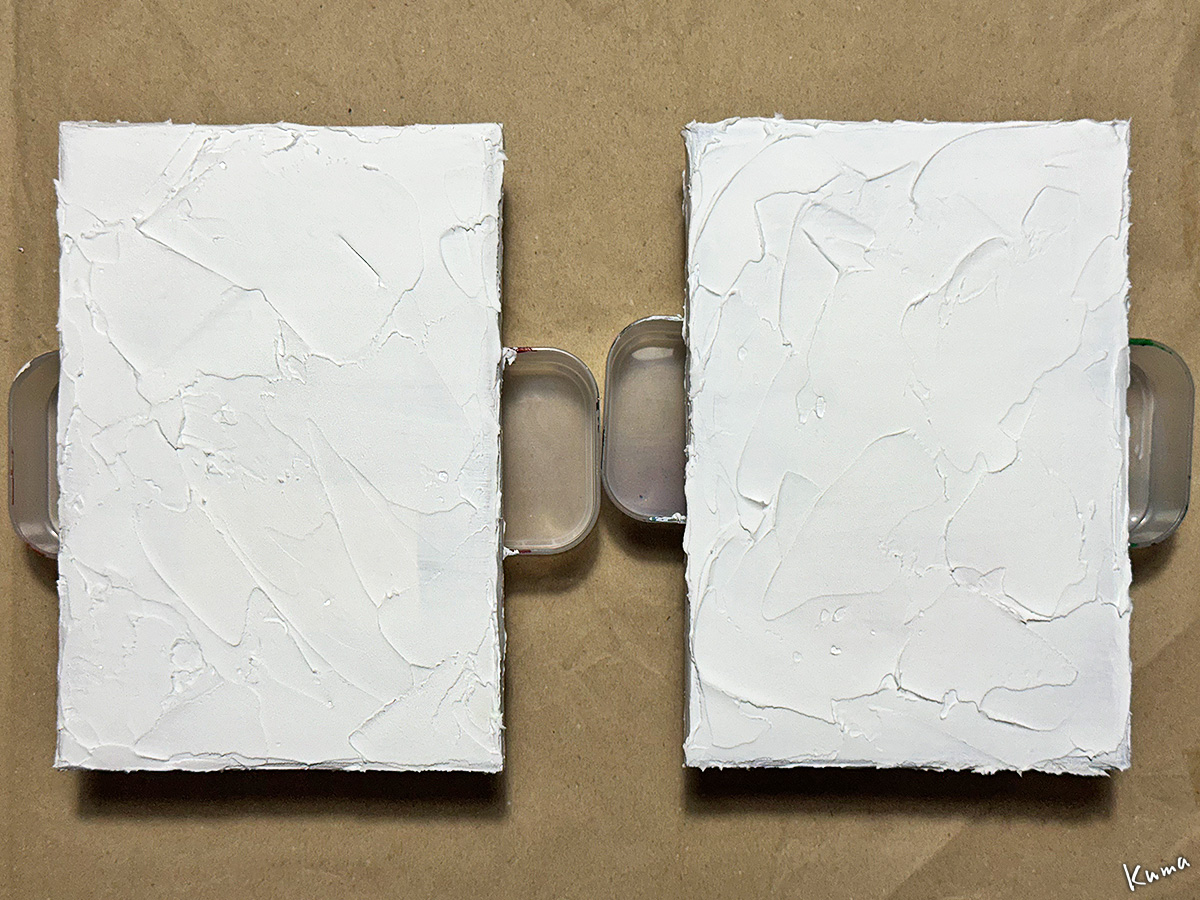 ジェッソで下地を整えた後に、モデリングペーストで凹凸のある表面を作る。ペインティングナイフでラフに仕上げた。