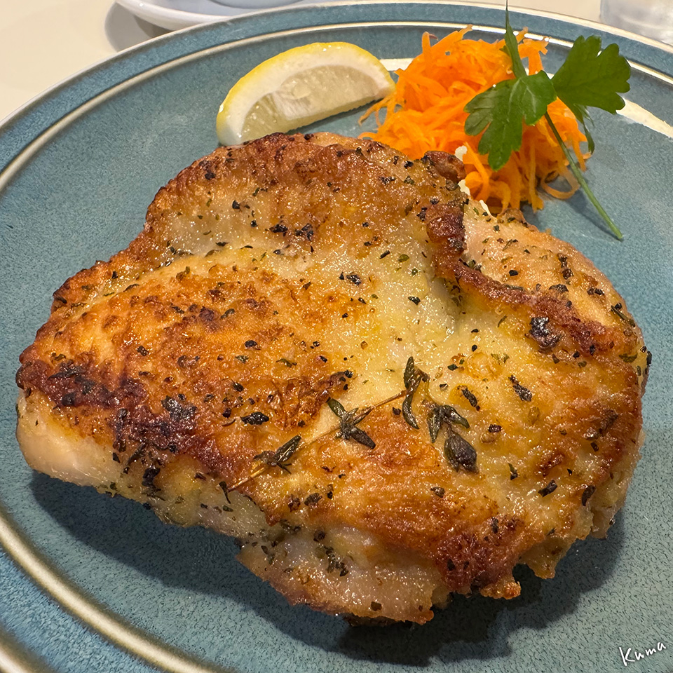 ホワイトチキンのグリル(パンorご飯つき)。肉が柔らかく、皮はカリッと焼けていて美味い。ボリュームも十分。
