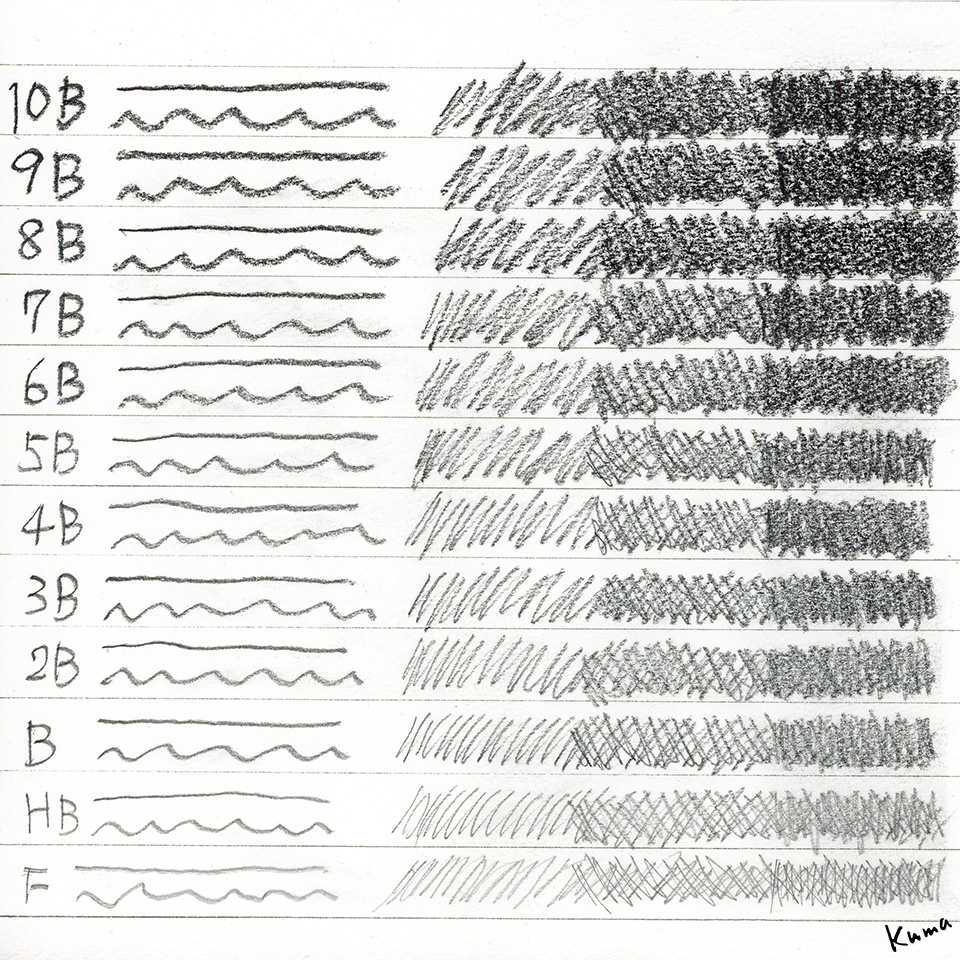 全ての硬度をできるだけ同じ筆圧で描いている。