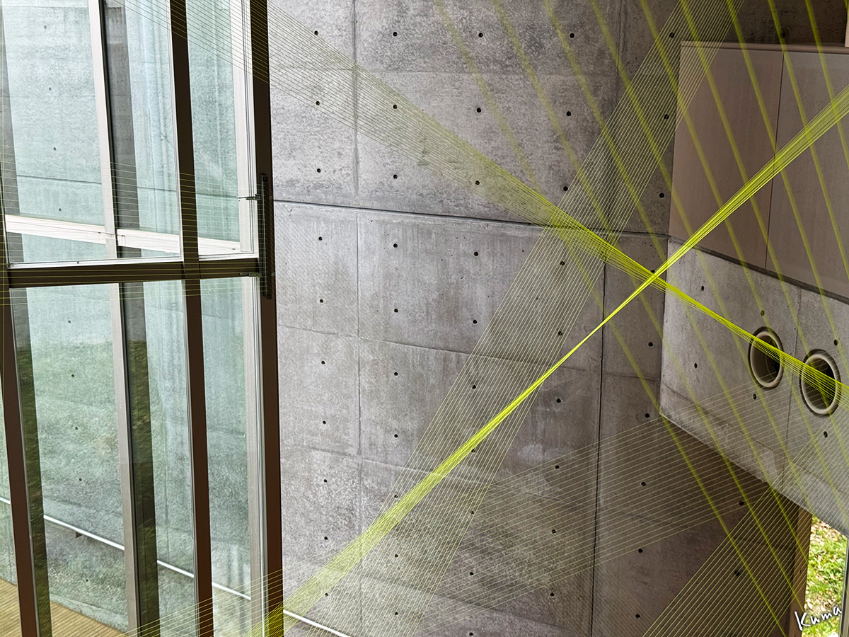 まるでレーザー光線のようにも見えるが、全て実物の糸。