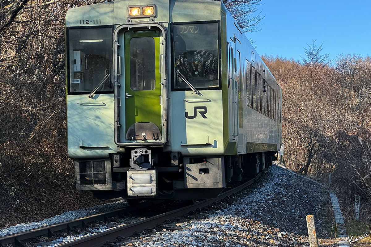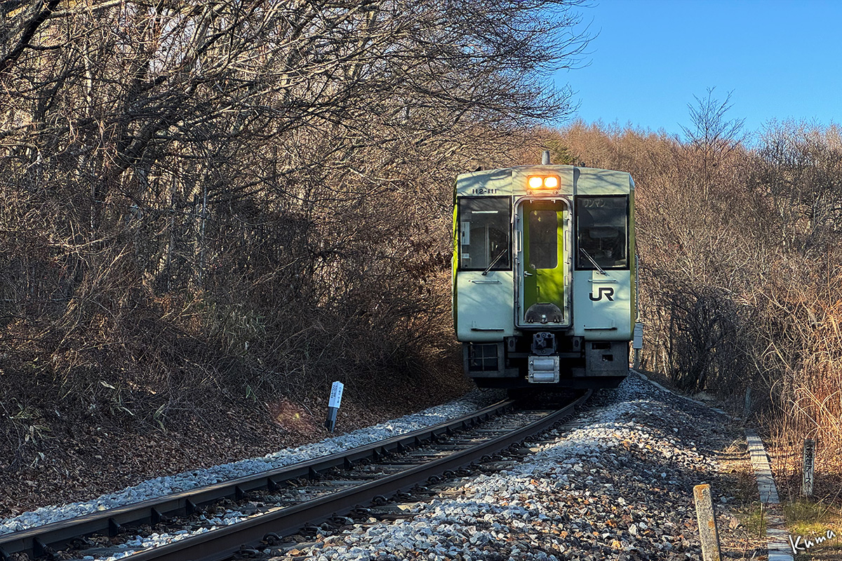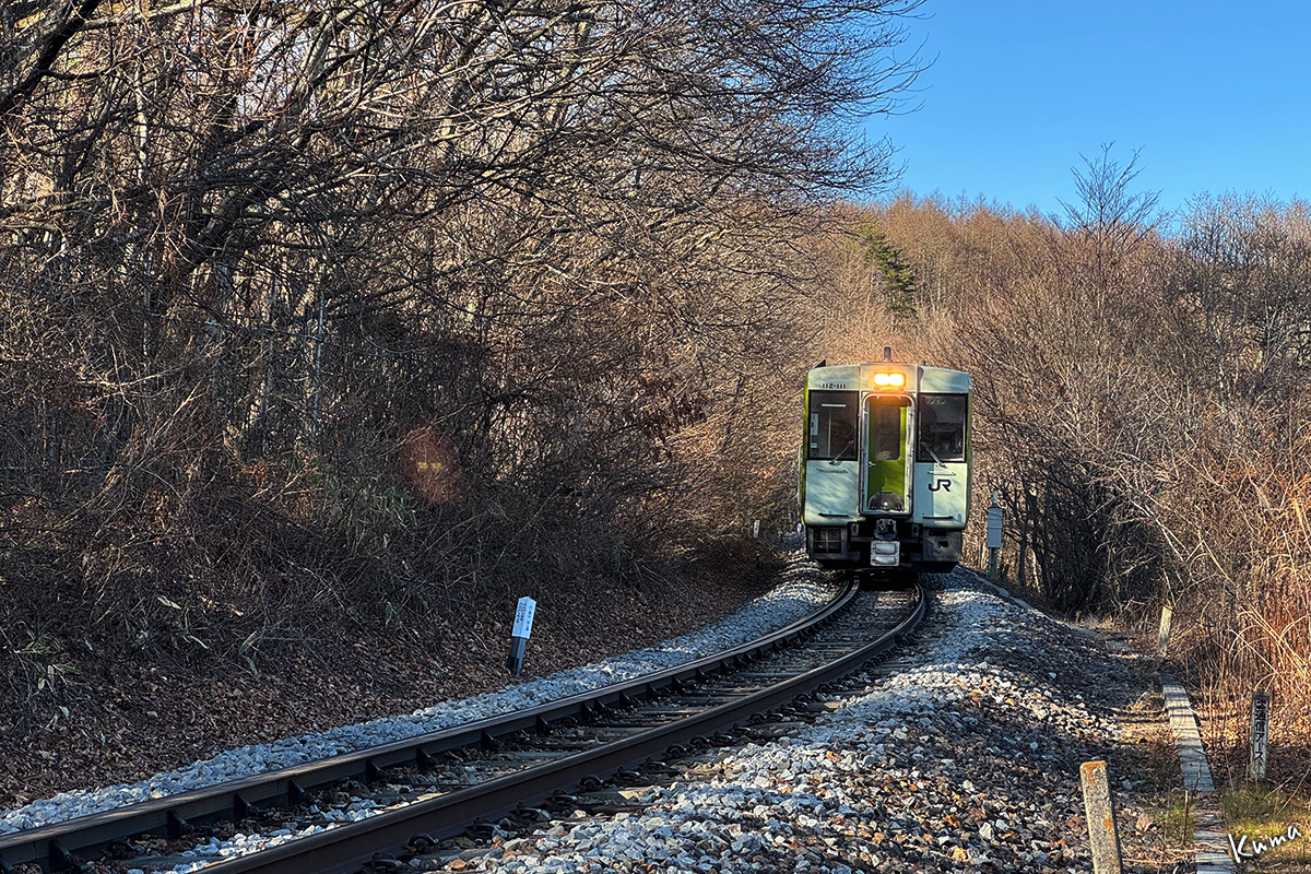 投稿日: 2025年12月17日2025年12月16日 投稿者: くまぱぱ冬の陽の射す森を 軽快なディーゼル音が近づいてくる。 小海線の上り普通列車小淵沢行きだ。 この辺は下り勾配なのでエンジンはほぼアイドリングだ。 陽射しの色は暖かく見えるがとても寒い。 後2〜3分で清里駅に到着する。