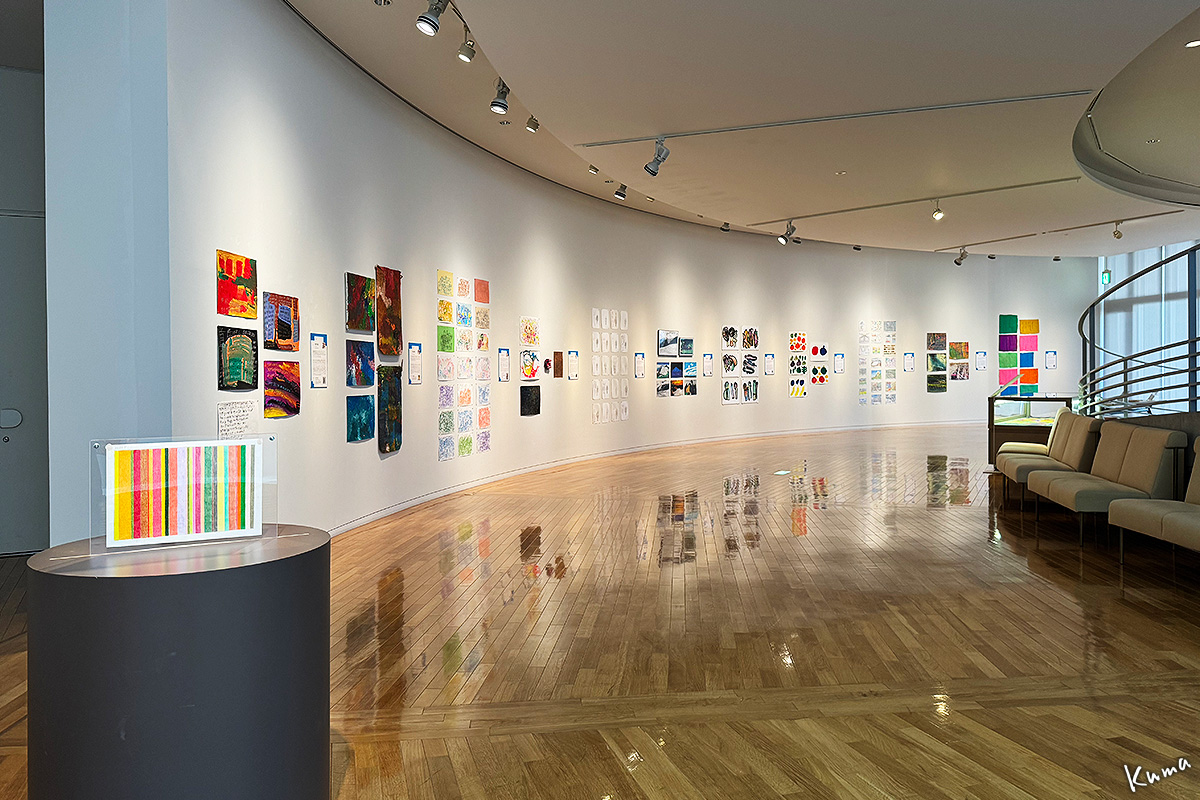 展示室の一番端からカーブした壁面を見る。